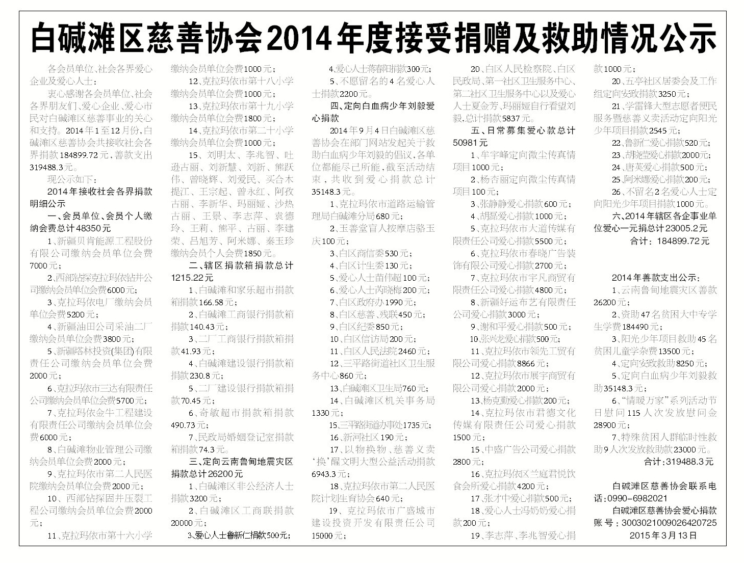bt365备用网址2014年度接收捐赠及救助情况公示